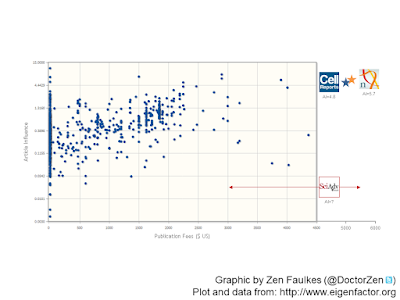 Here’s how Cell Report’s cost stacks up to other open access journals. You have to break the axis to compare it to most other journals.