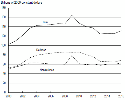 A set of flat research budgets in real dollars (check the “nondefense” line). Labs shutting down, and an endless stream of complaints about the amount of time spent trying to get money for research instead of doing research.