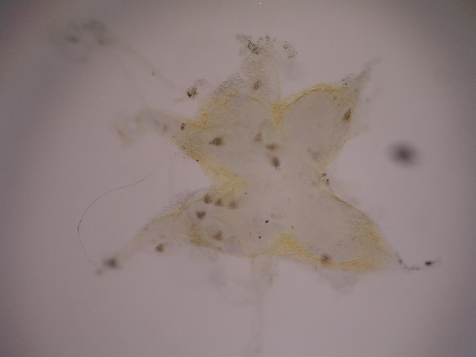 I had already co-authored published a paper on parasitic nematodes in sand crab (Joseph and Faulkes 2014). But when we did the initial screen for whether there were any parasites in this species, we missed the tapeworm larvae entirely! Even though we has spent a lot of time looking at them in shrimp, we did not notice them.