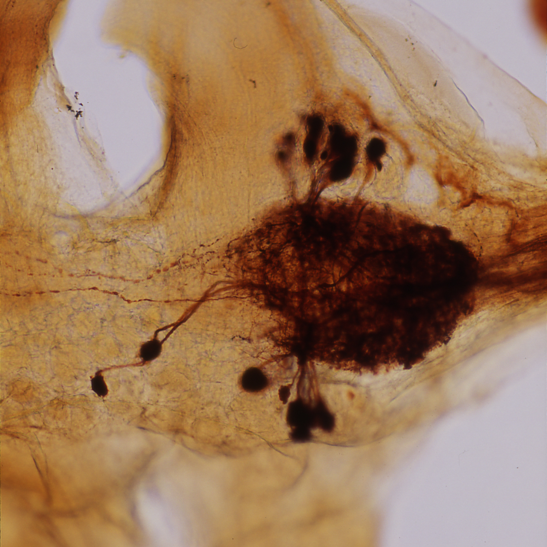 I looked under the microscope at a sand crab brain we were staining, and thought, “Hey, I recognize that!” It was a larval tapeworm. I’d coauthored two papers about how they infect the nervous system of local white shrimp (Carreon et al. 2011, Carreon and Faulkes 2014).