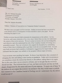 Albrecht Schulte-Hostedde was brave enough to post one of his old rejection letters this on Twitter (text follows images). Albrecht prefaced this saying, “Lessons learned as a young and arrogant graduate student.”