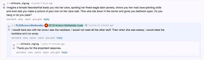 The gist of the question is, “female Neanderthal... do you bang or do you pass?”